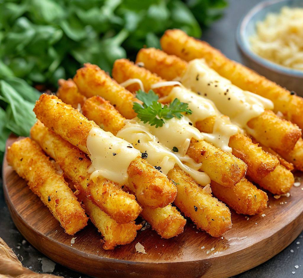 5. Влажными руками сформировать картофельные палочки, в середину положить сыр, обвалять в панировочных сухарях и обжарить с 4-х сторон на растительном масле до образования золотистой корочки.