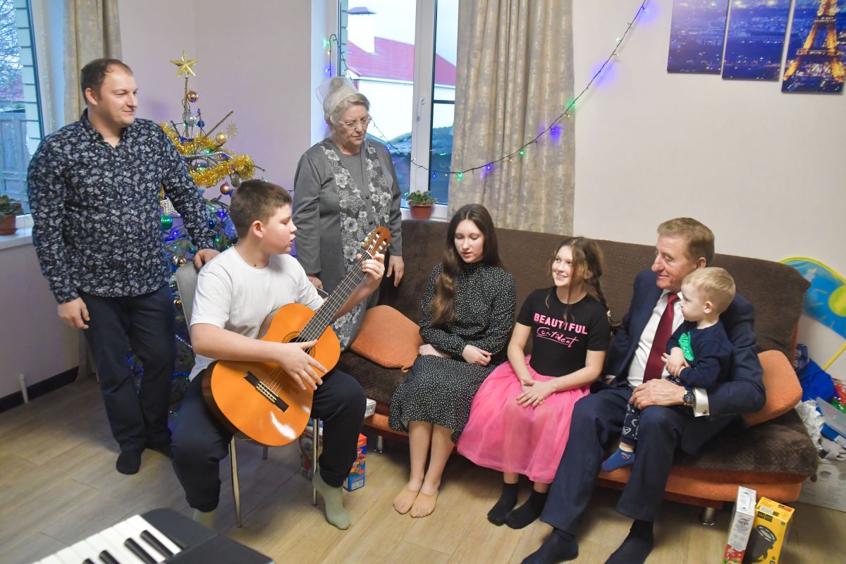 Сергей Лукин поздравил главу семьи Тимофея Николаевича с рождением пятого ребенка и отметил, что семья Гребенюк является достойным примером для соотечественников.