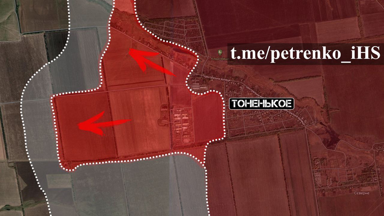 Противник признает дальнейшую потерю позиций в районе Тоненького и продвижение ВС РФ к северо-западу и западу от поселка. Несмотря на все усилия, остановить продвижение ВС РФ к западу от Авдеевки противник не может.