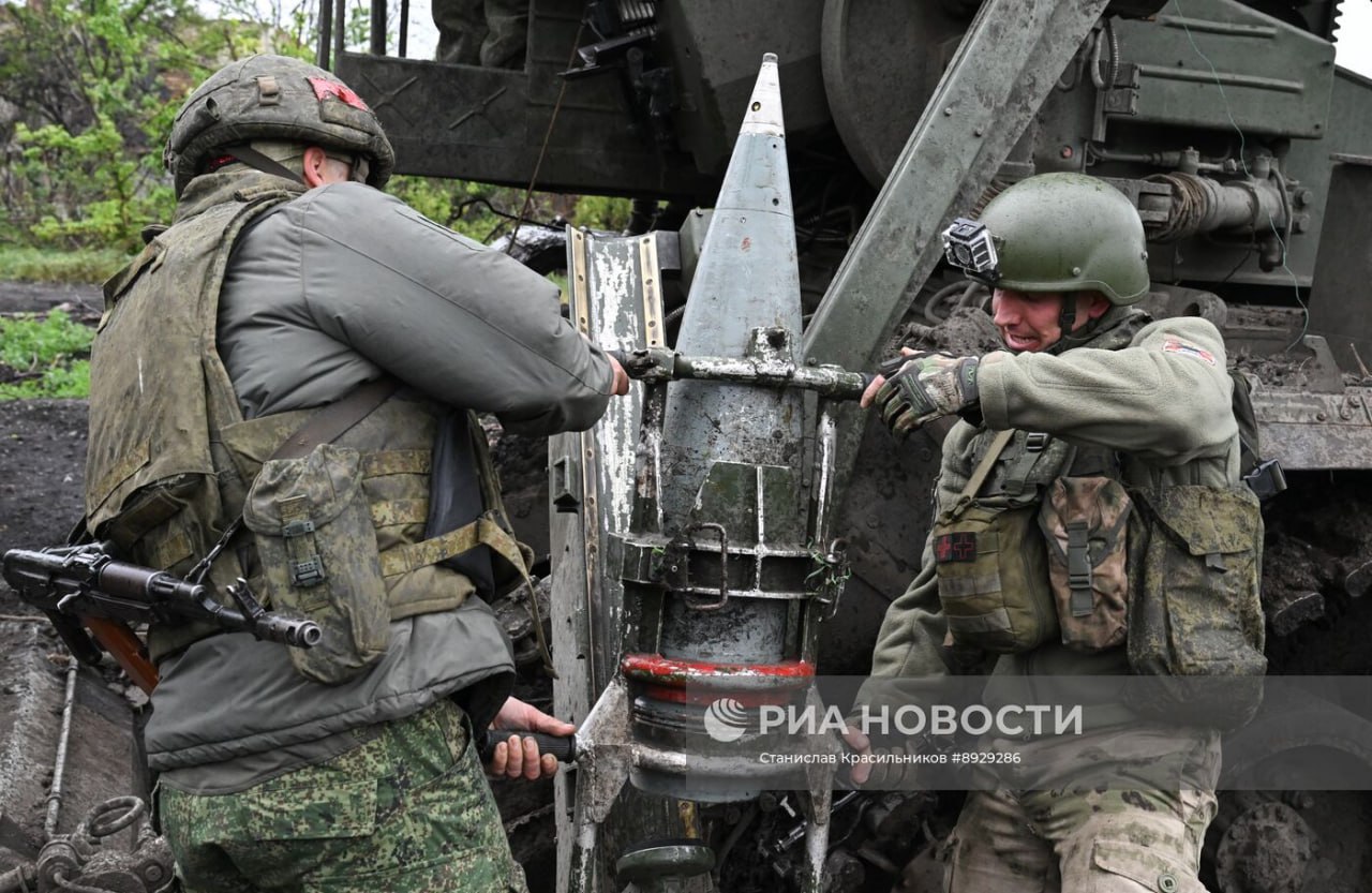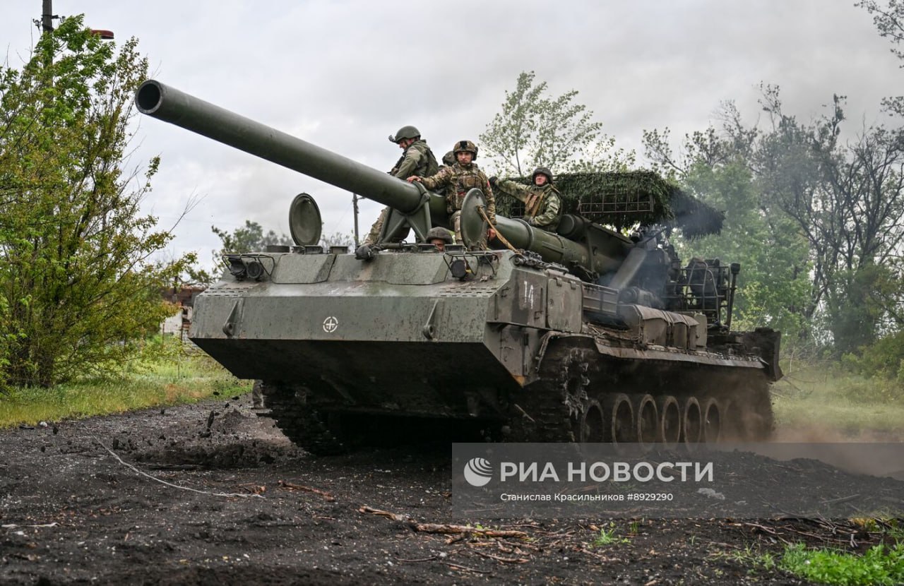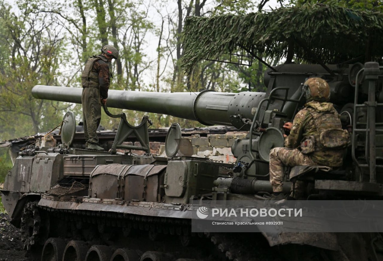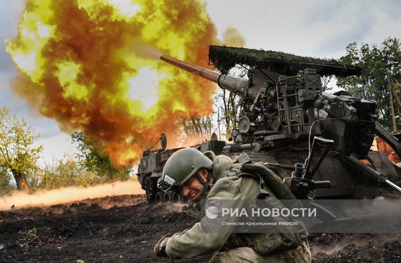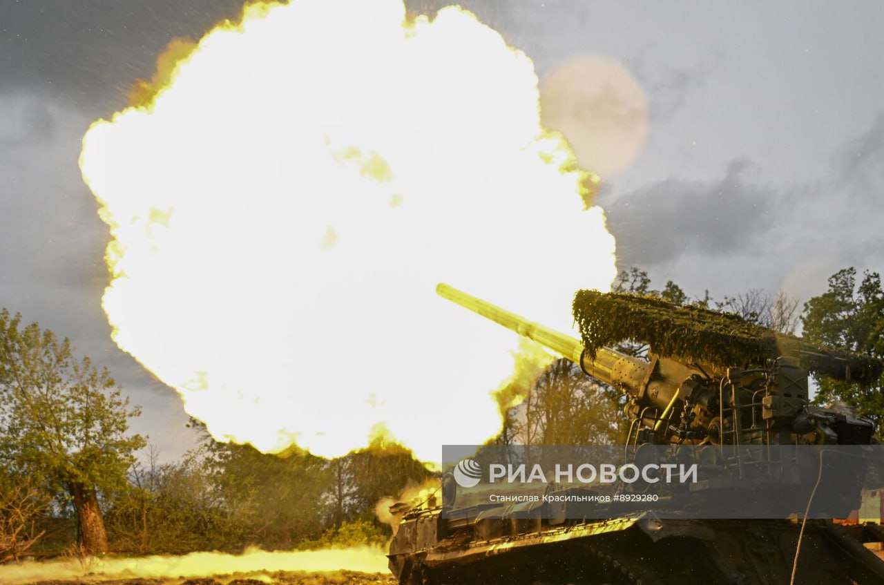 Боевая работа артиллерийского расчета самоходной пушки 2С7М "Малка" группировки войск "Центр" на Красноармейском направлении СВО.