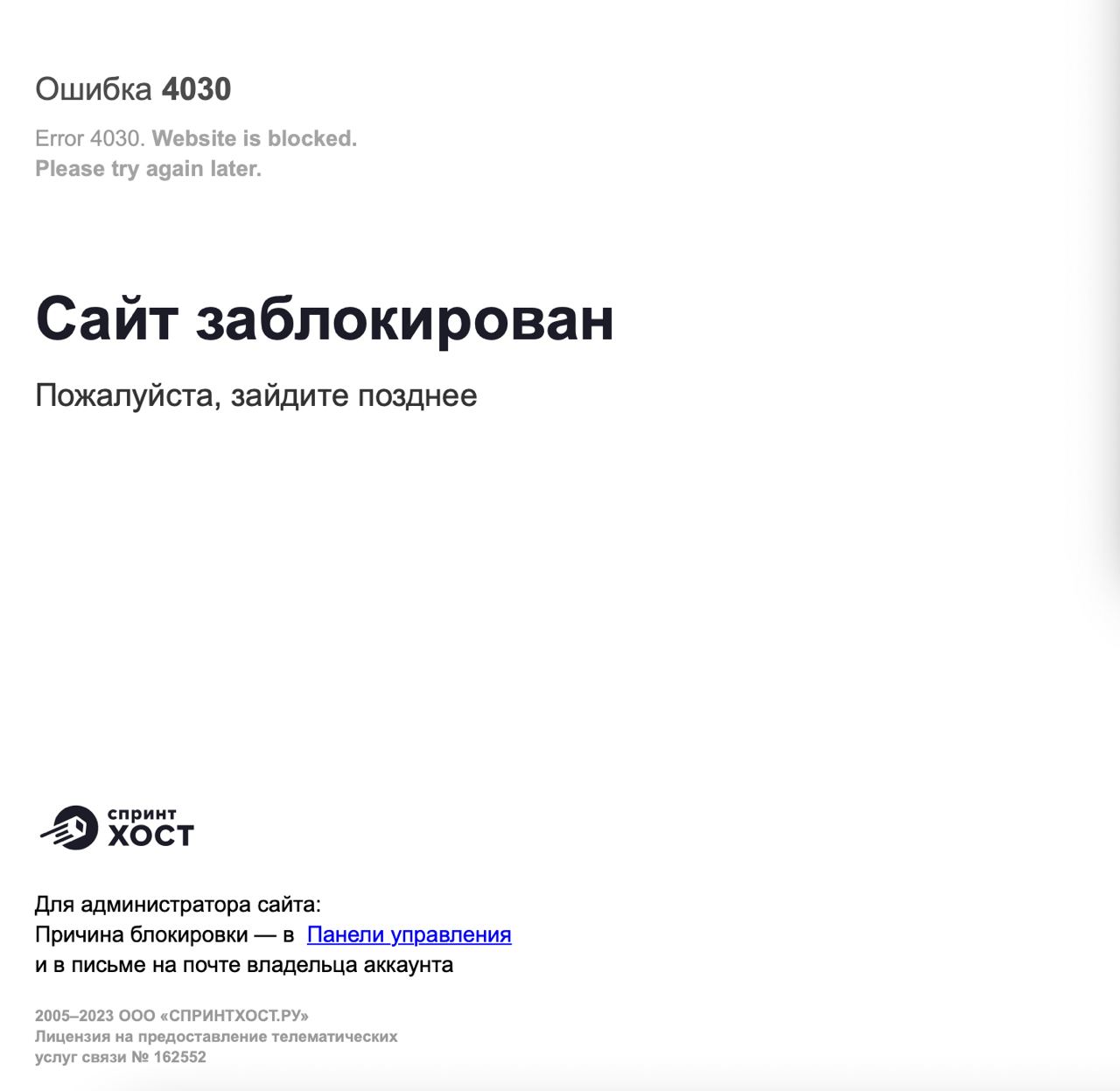 Причина блокировки неизвестна. В реестре заблокированных ресурсов Роскомнадзора сайта нет.