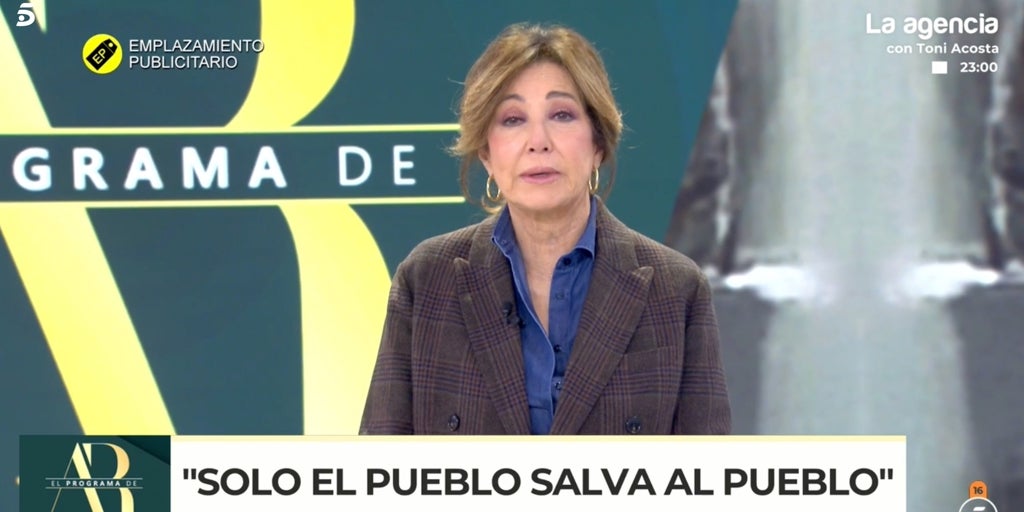 «Buenos días, 'Solo el pueblo salva al pueblo'», comenzaba diciendo una seria Ana Rosa Quintana ante las cámaras de 'El programa de Ana Rosa'. «Lo vimos escrito con barro en las paredes de Valencia hace un año. Si algo quedó claro aquel trágico 29 de octubre de 2024 que se llevó la vida de 229 personas en la dana de Valencia, es que 'solo el pueblo salva al pueblo. En España, lo mejor es el pueblo'. Esta frase la escribió Antonio Machado en una carta a un amigo en 1937 en la localidad valenciana de Rocafort, municipio cercano a las zonas más devastadas por la dana, donde Machado y su familia se refugiaron de los horrores de la guerra y el abandono», exponía la presentadora del matinal de Telecinco antes de continuar con su particular homenaje a las víctimas de la dana.