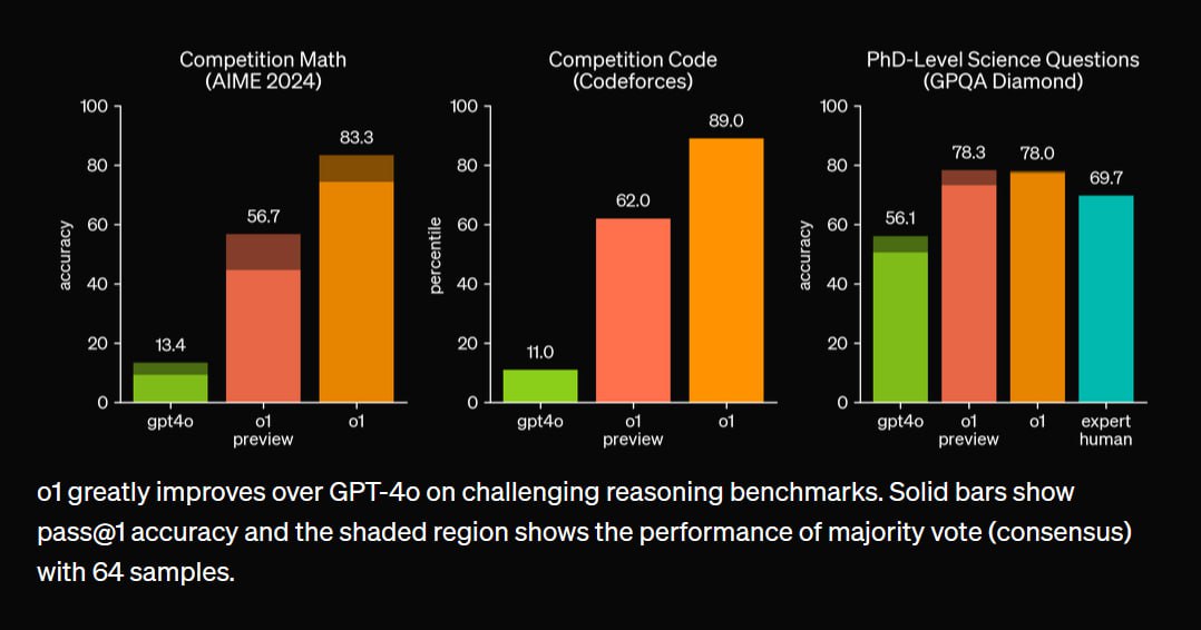 • o1 в 5 раз умнее текущей GPT-4o и отвечает на уровне доктора наук точных дисциплин;