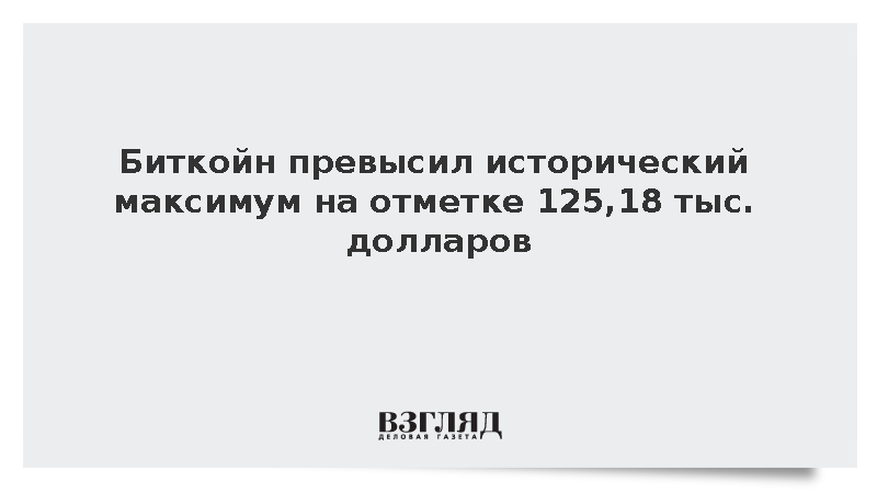 Стоимость биткойна достигла нового исторического максимума, передает ТАСС. По данным площадки Binance, утром 5 октября курс криптовалюты превысил 124,48 тыс. долларов, а в 08:11 по московскому времени поднялся до 124,9 тыс. долларов, что на 1,97% выше предыдущего значения. К 08:14 курс биткойна ускорил рост и достиг 125,18 тыс. долларов, что составило увеличение на 2,06%. Предыдущий рекорд по стоимости криптовалюты был установлен 14 августа 2025 года, когда биткойн поднимался до 124,47 тыс. долларов.