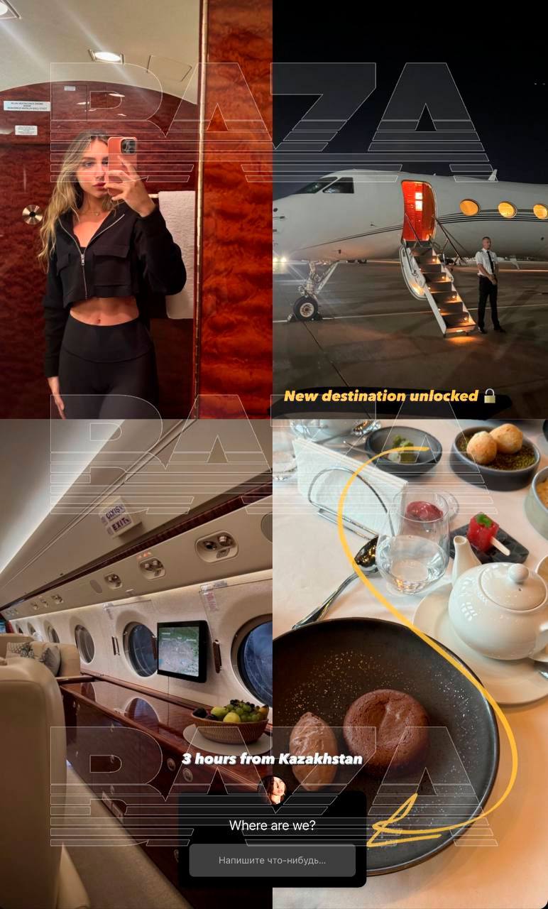 16 августа Юля выложила у себя в инсте* сториз о том, что она прилетела в Азербайджан из Казахстана. На фоне девушки был виден самолет Embraer Legacy 600. Также из Азербайджана она выкладывала фото с аналитикой по мессенджерам.