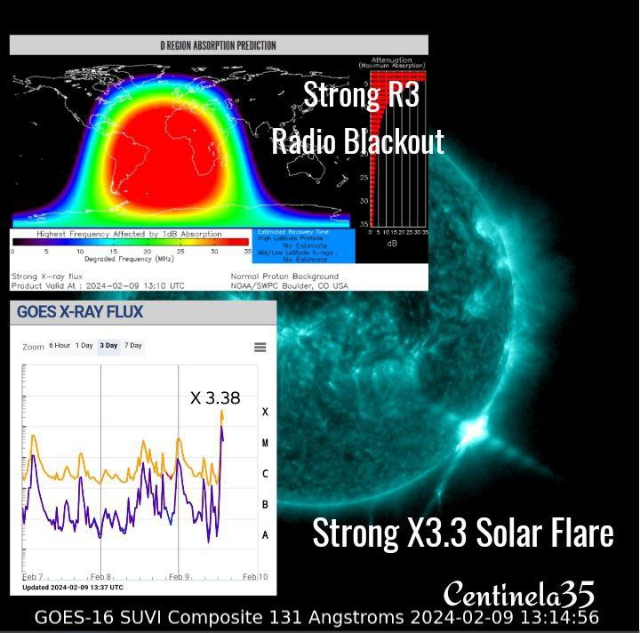 ☀️Мощная солнечная вспышка сильнейшего класса X (X3.3) происходит в области, расположенной на юго-западной оконечности Солнца
