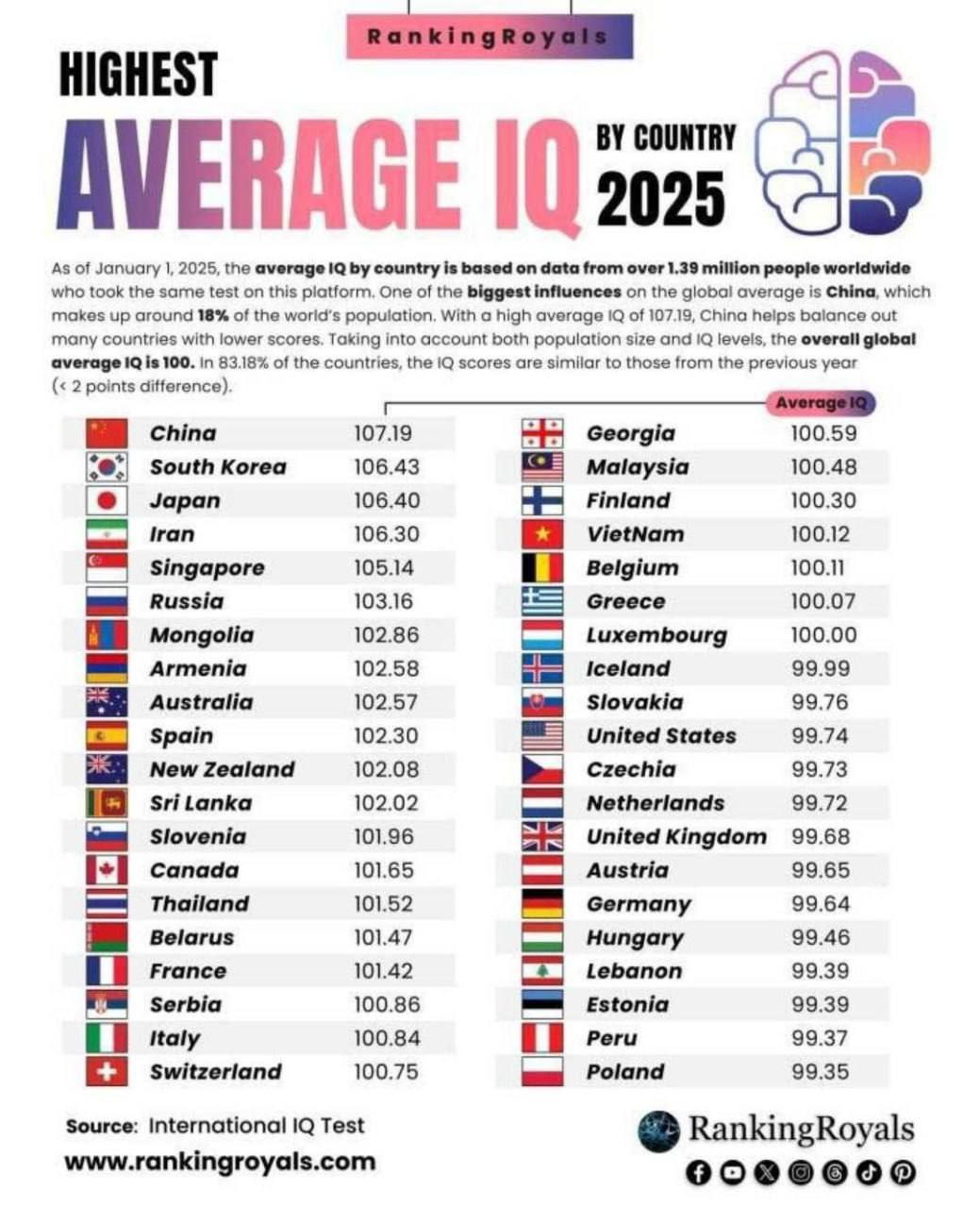 π Π ΠΎΡΡΠΈΡ ΡΠΎΡ ΡΠ°Π½ΠΈΠ»Π° Π·Π° ΡΠΎΠ±ΠΎΠΉ 6-Π΅ ΠΌΠ΅ΡΡΠΎ ΠΏΠΎ IQ Π² ΠΌΠΈΡΠ΅, ΠΡΠΌΠ΅Π½ΠΈΡ ΠΏΠΎΠ΄Π½ΡΠ»Π°ΡΡ Π½Π° 8-Π΅, ΠΠ΅Π»ΠΎΡΡΡΡΠΈΡ Π½Π° 16-ΠΌ ΠΌΠ΅ΡΡΠ΅