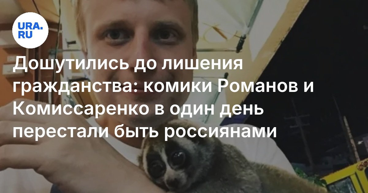 Комиков Вячеслава Комиссаренко и Дмитрия Романова, выступающих в жанре стендап, лишили российского гражданства поскольку их деятельность угрожает нацбезопасности РФ. Такое решение было принято в ФСБ. Кроме того, Комиссаренко уже объявили в межгосударственный розыск. О том, как юмористы дошутились до лишения гражданства России — в материале URA.RU.