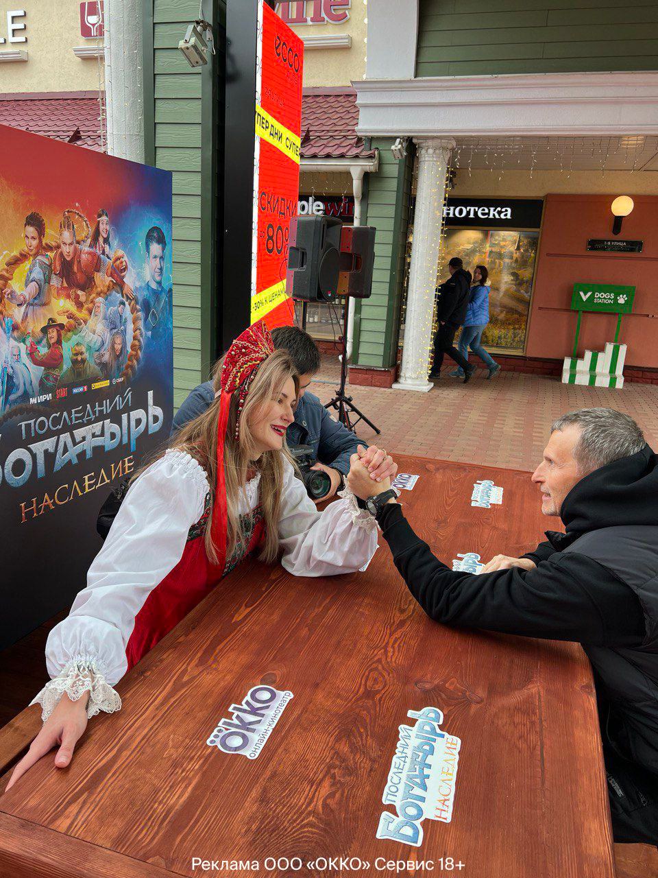 В честь выхода в онлайн-кинотеатре Okko сериала «Последний богатырь. Наследие» в городе установили зону для армрестлинга, сражаться в которой нужно будет с хрупкими, на первый взгляд, девушками.