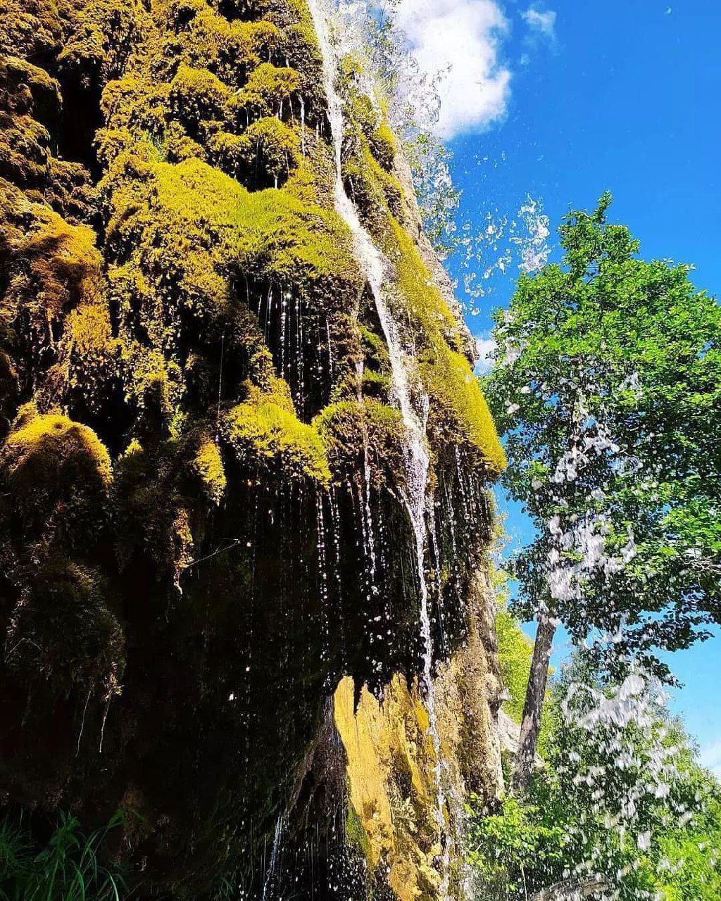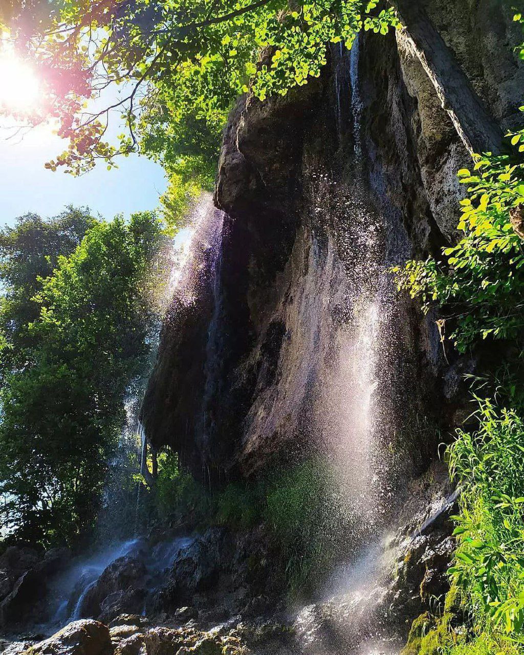 ΠΠ°Ρ ΠΎΠ΄ΠΈΡΡΡ ΠΎΠ½ Π½Π° ΠΈΠ·Π²Π΅ΡΡΠ½ΡΠΊΠΎΠ²ΠΎΠΉ ΡΠΊΠ°Π»Π΅ ΠΠ»Π°ΠΊΡΡΠΈΠΉ ΠΊΠ°ΠΌΠ΅Π½Ρ, ΡΡΠΎ Π²ΠΎΠ·Π²ΡΡΠ°Π΅ΡΡΡ Π½Π° Π±Π΅ΡΠ΅Π³Ρ ΡΠ΅ΠΊΠΈ ΠΠ½Π·Π΅Ρ, Π²Π±Π»ΠΈΠ·ΠΈ Π΄Π΅ΡΠ΅Π²Π½ΠΈ ΠΠ±Π·Π°Π½ΠΎΠ²ΠΎ, ΠΈ ΠΏΠ°Π΄Π°Π΅Ρ Ρ Π²ΡΡΠΎΡΡ 6 ΠΌΠ΅ΡΡΠΎΠ². ΠΠ΅ΡΡΠ½ΠΎΡΡΡ ΠΎΡΠ΅Π½Ρ ΠΊΡΠ°ΡΠΈΠ²Π°Ρ β ΡΡΠΎΠΏΠ°ΡΡΠ°Ρ Π² Π·Π΅Π»Π΅Π½ΠΈ ΡΠ΅ΠΊΠ° ΠΠ½Π·Π΅Ρ Ρ ΠΌΠ½ΠΎΠΆΠ΅ΡΡΠ²ΠΎΠΌ ΡΠ°Π·Π²Π΅ΡΠ²Π»Π΅Π½ΠΈΠΉ ΠΈ ΠΌΠΈΠ»ΡΠΌΠΈ, ΠΎΡΠ΅Π½Ρ ΡΠΎΡΠΎΠ³Π΅Π½ΠΈΡΠ½ΡΠΌΠΈ Π·Π°Π²ΠΎΠ΄ΡΠΌΠΈ.