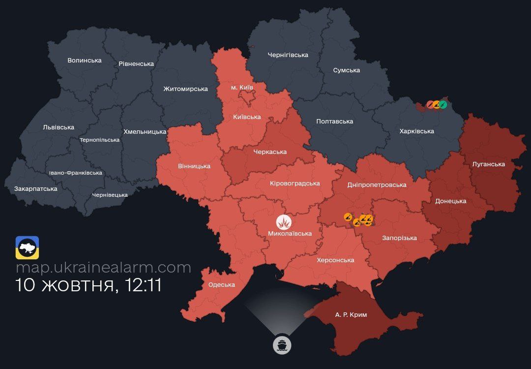 Угроза баллистики в областях, где объявлена тревога,