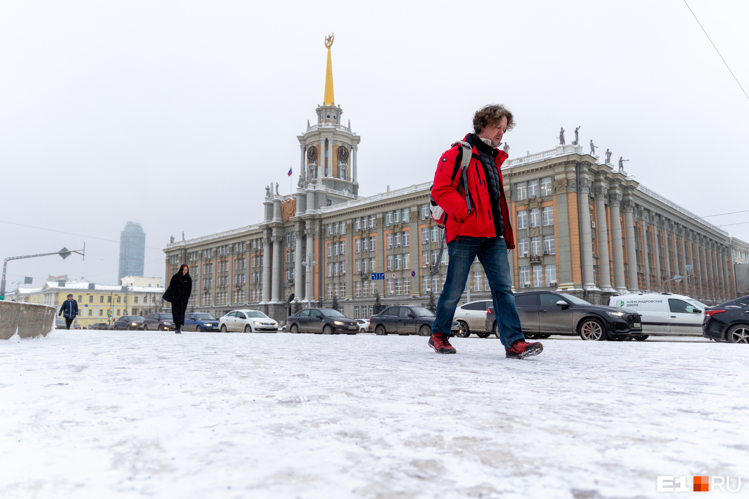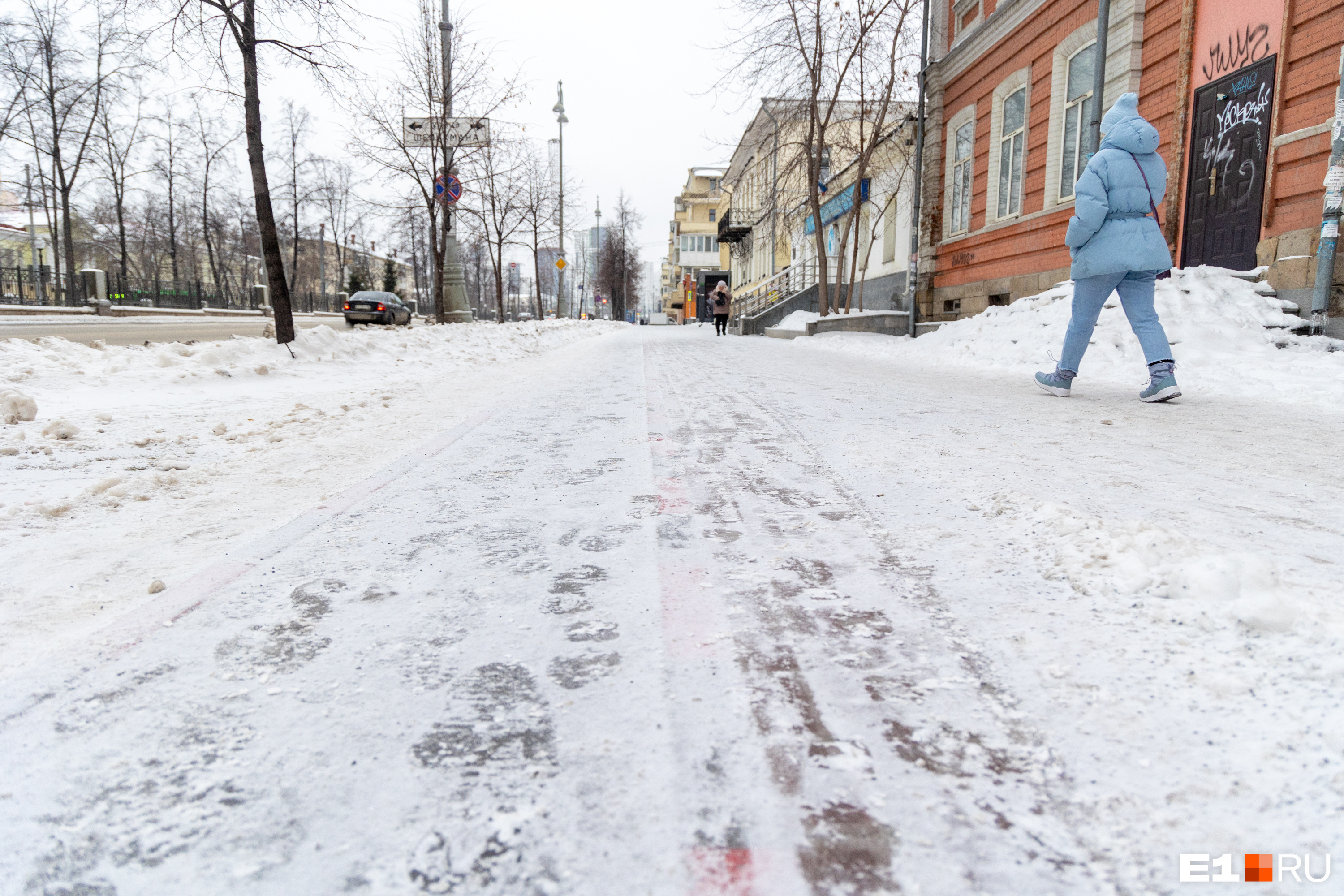 Показываем, как сейчас выглядит скользкий центр Екатеринбурга.