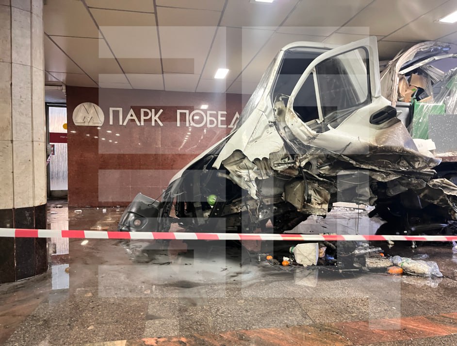 В Москве грузовая «Газель» заехала в подземный переход на станции метро «Парк Победы»