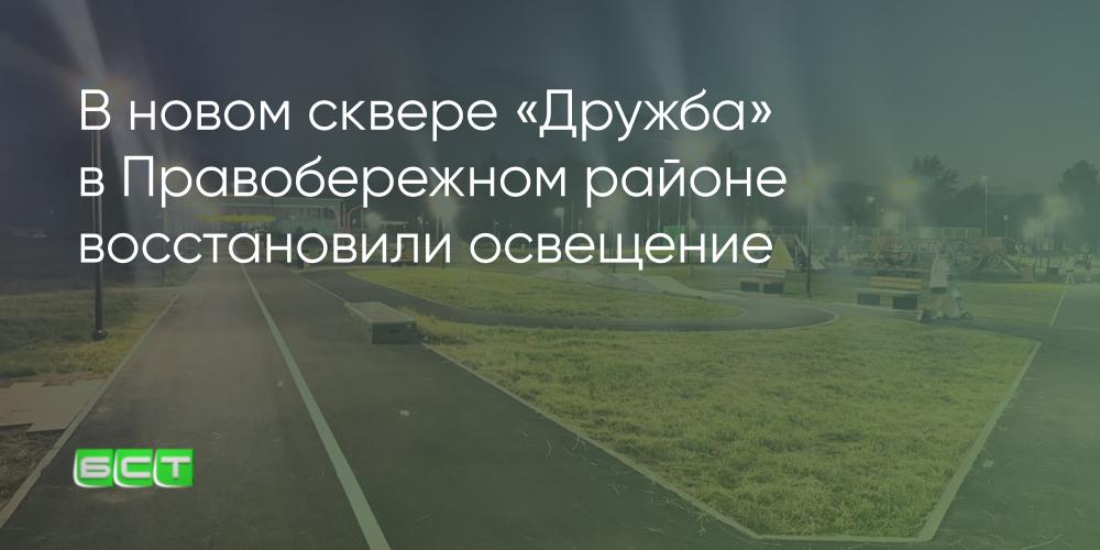 Да будет свет! Поломку, которая мешала жителям Правобережнго района наслаждаться вечерними прогулками в новом сквере, устранили. И уже вчера вечером на общественной территории было светло. Об этом рассказал Братской студии телевидения начальник управления по Правобрежному району администрации города Дмитрий Красько.