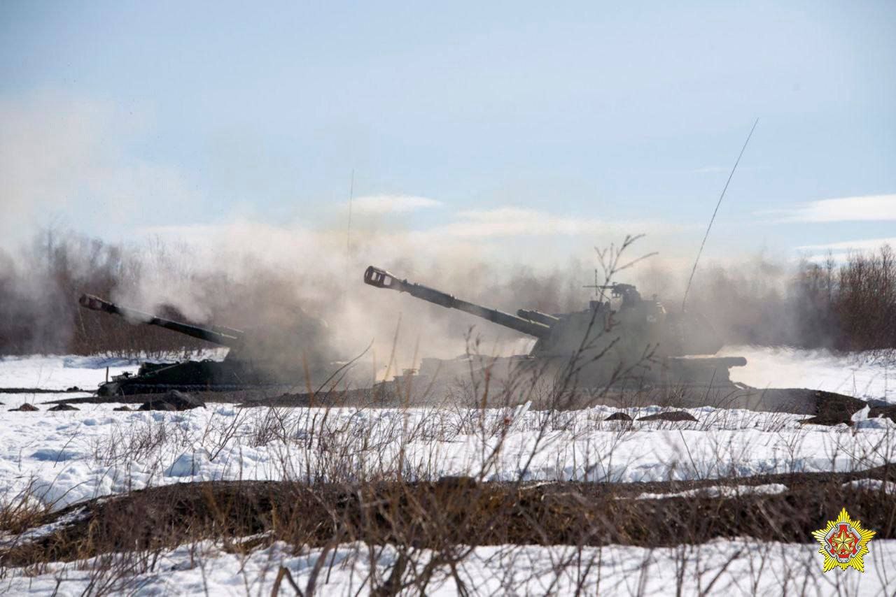 Военнослужащие артиллерийского подразделения 6-й отдельной гвардейской механизированной бригады Республики Беларусь проводят учения.