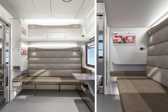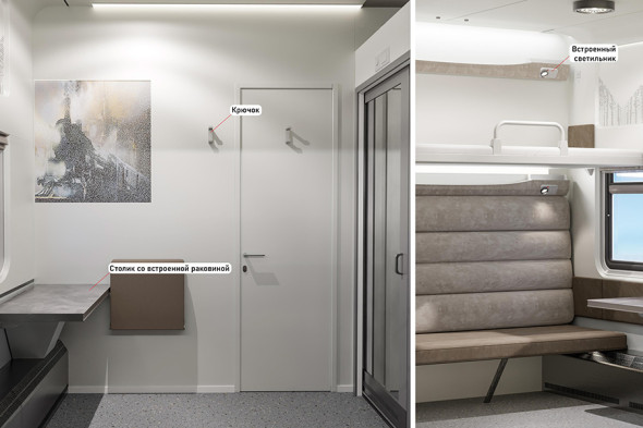 В новом варианте СВ предусмотрена иная планировка: полки будут расположены вертикально, друг над другом, а не как сейчас, друг напротив друга.