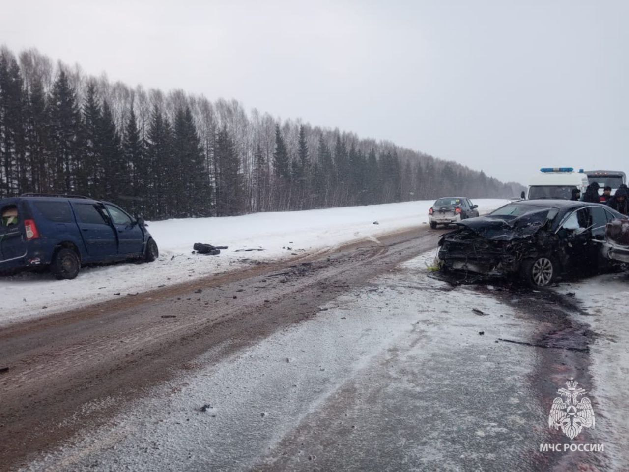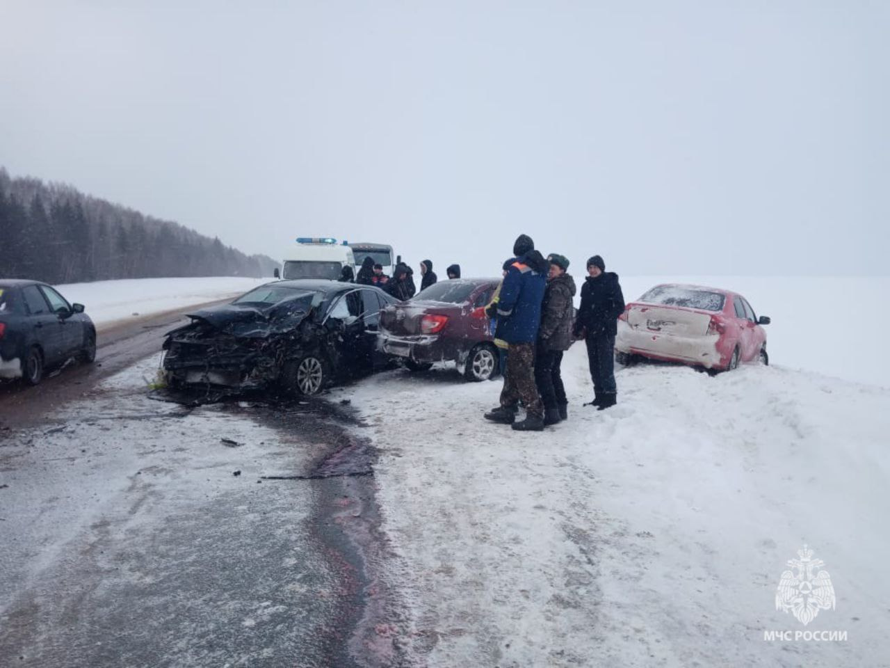 На трассе столкнулись Lada Largus, Lada Granta, Toyota Camry и Toyota Corolla. Погибли два человека из Lada Largus, а еще троих из Toyota Camry госпитализировали.