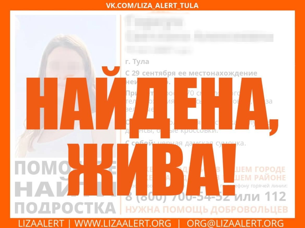 В Тульской области нашли живой девочку-подростка, пропавшую в областном центре. Ее местонахождение было неизвестно с 29 сентября 2023 года.
