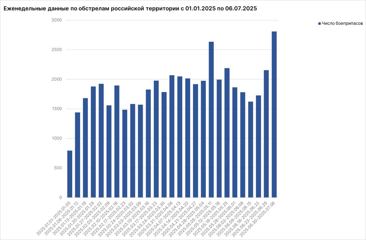 Мирошник также подчеркнул, что за прошедшую неделю противник выпустил по нашей территории не менее 2810 боеприпасов - это более 400 прилетов ежесуточно: