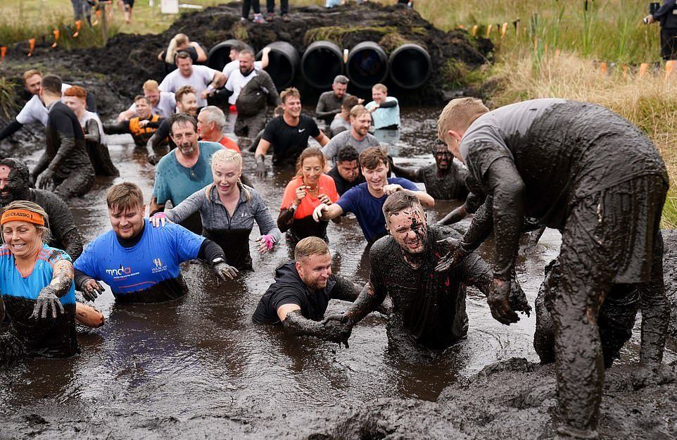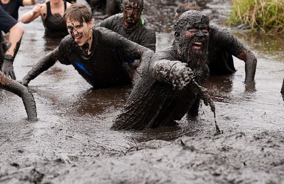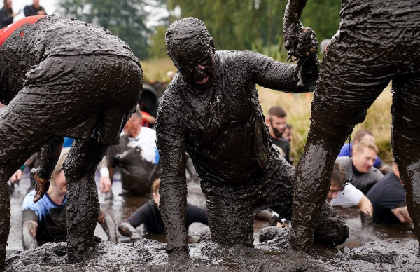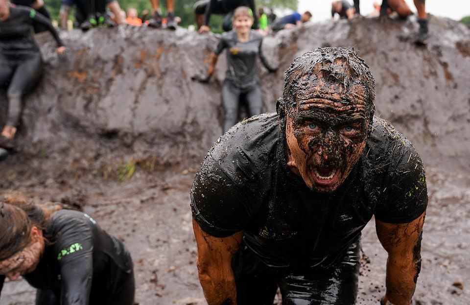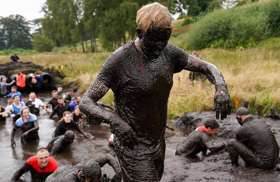 Отважные претенденты собрались в замковых садах Чолмондели в Малпасе, графство Чешир, в субботу, чтобы принять участие в сложном забеге, который "известен как самый грязный", согласно веб-сайту Tough Mudder UK.Классический курс жесткой грязи позволяет тем, кто достаточно смел, преодолеть десятимильную дистанцию с 25 сложными препятствиями, или спортсмены могут принять участие в более коротком трехмильном испытании, состоящем всего из 13 препятствий. У детей также была возможность поучаствовать в грязном приключении длиной в одну милю.Объявленные как испытание силы, выносливости, решимости и товарищества, люди должны быть достаточно смелые, чтобы записаться на мероприятие, где преодолевают множество препятствий, от которых слезы накатываются на глаза.От гигантской ледяной ванны с надписью "Артикуляционная клизма" до "Электрошоковой терапии" и "Маддерхорна" - самого высокого подъема, который может быть установлен на полосе препятствий, участникам приходилось напрягаться до предела, чтобы пройти сложную гонку.Фотографии доказывают, что трасса была не для слабонервных, так как волевым соперникам приходилось карабкаться по скользким насыпям грязи, бежать по проселочным дорогам и скатываться по крутым склонам - и все это в то время, когда они были покрыты толстыми слоями грязи.