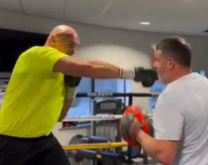Tyson Fury on the pads today ahead of his fight vs Oleksandr Usyk on May 18th…
