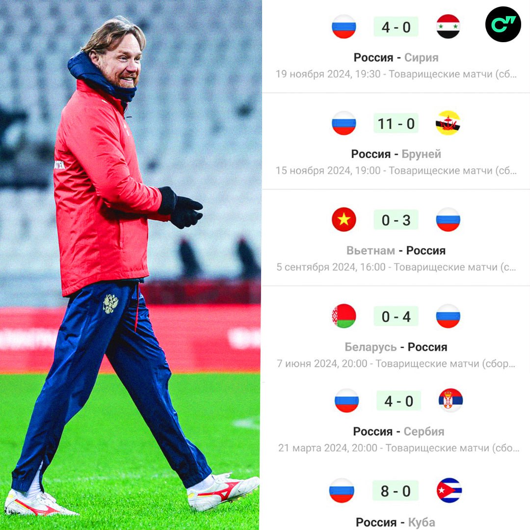 Сборная России при Карпине выиграла 6 матчей подряд с общим счетом 34:0