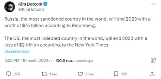❗️«Россия — самая «подсанкционная» страна в мире — завершит 2023 год с прибылью в 75 миллиардов долларов», — Bloomberg.