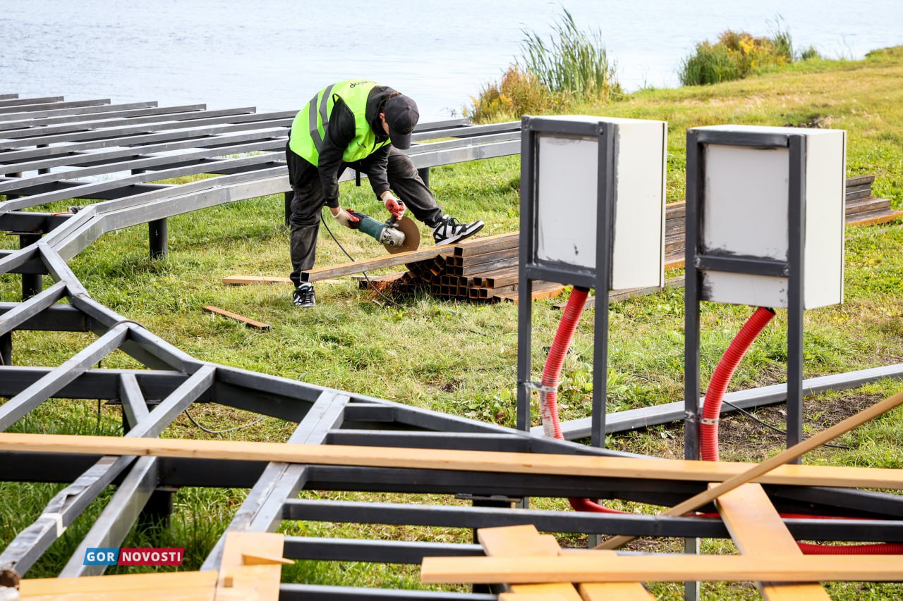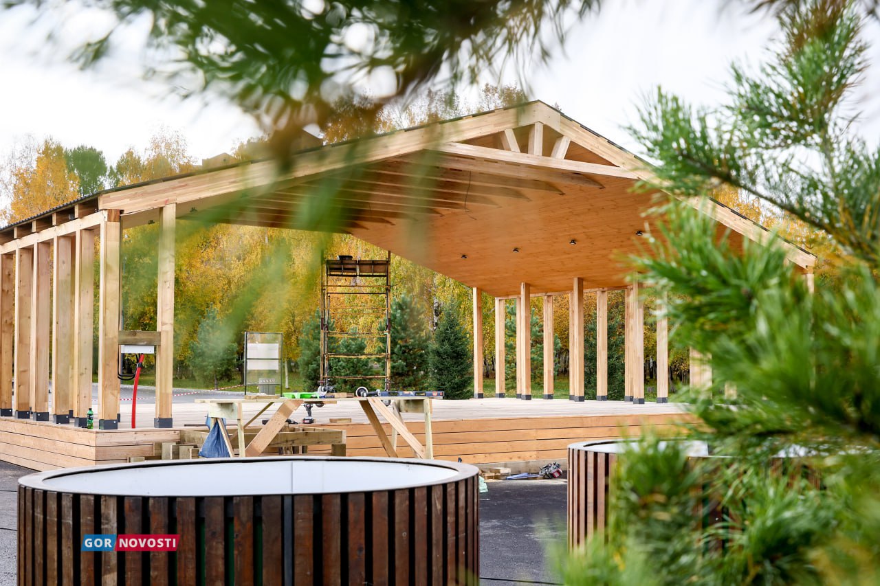 Этим летом там заменили асфальтовое покрытие на центральной аллее, установили новые бордюры. По просьбе жителей в парке сделали сцену с пандусом. Сейчас завершается обустройство смотровой площадки около озера: нужно уложить настил, установить ограждения и сделать светодиодное освещение.