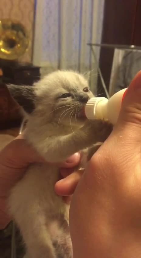 Когда мне его принесли, он помещался у меня на ладони. Пытались кормить его из шприца. Потом я купил специальную соску и смеси для выхаживания котят. И выкормил его, как мамка.