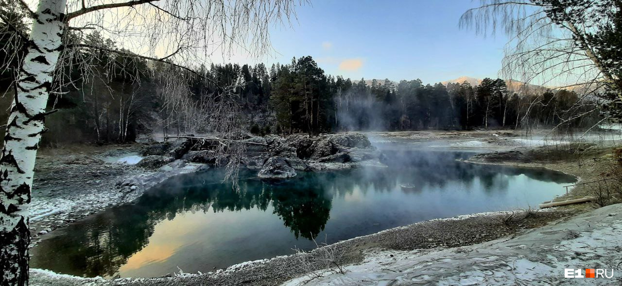 Эти озерца никогда не замерзают. На берегу стоит баня и есть спуск к реке для тех, кто после парения решит окунуться.