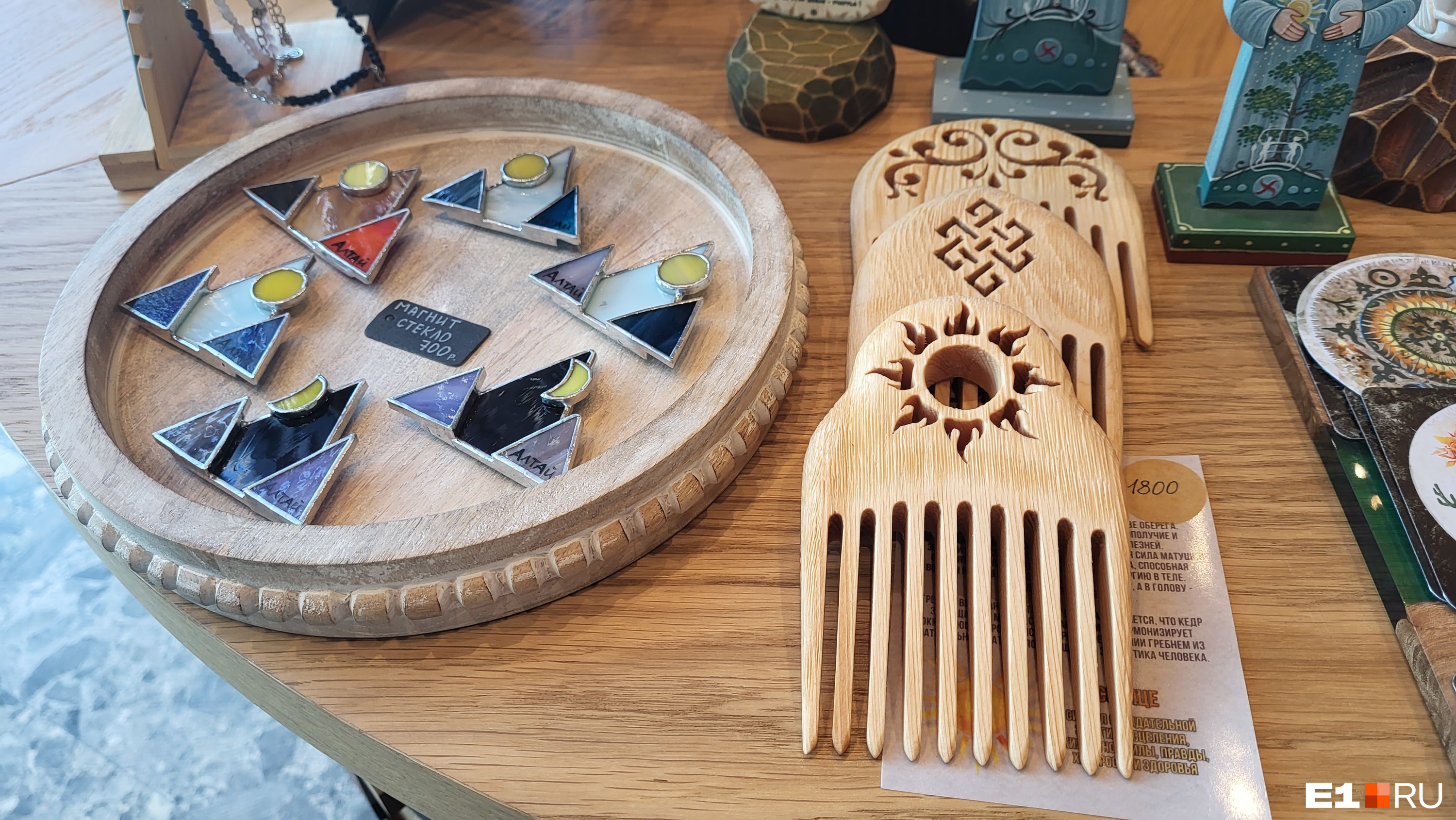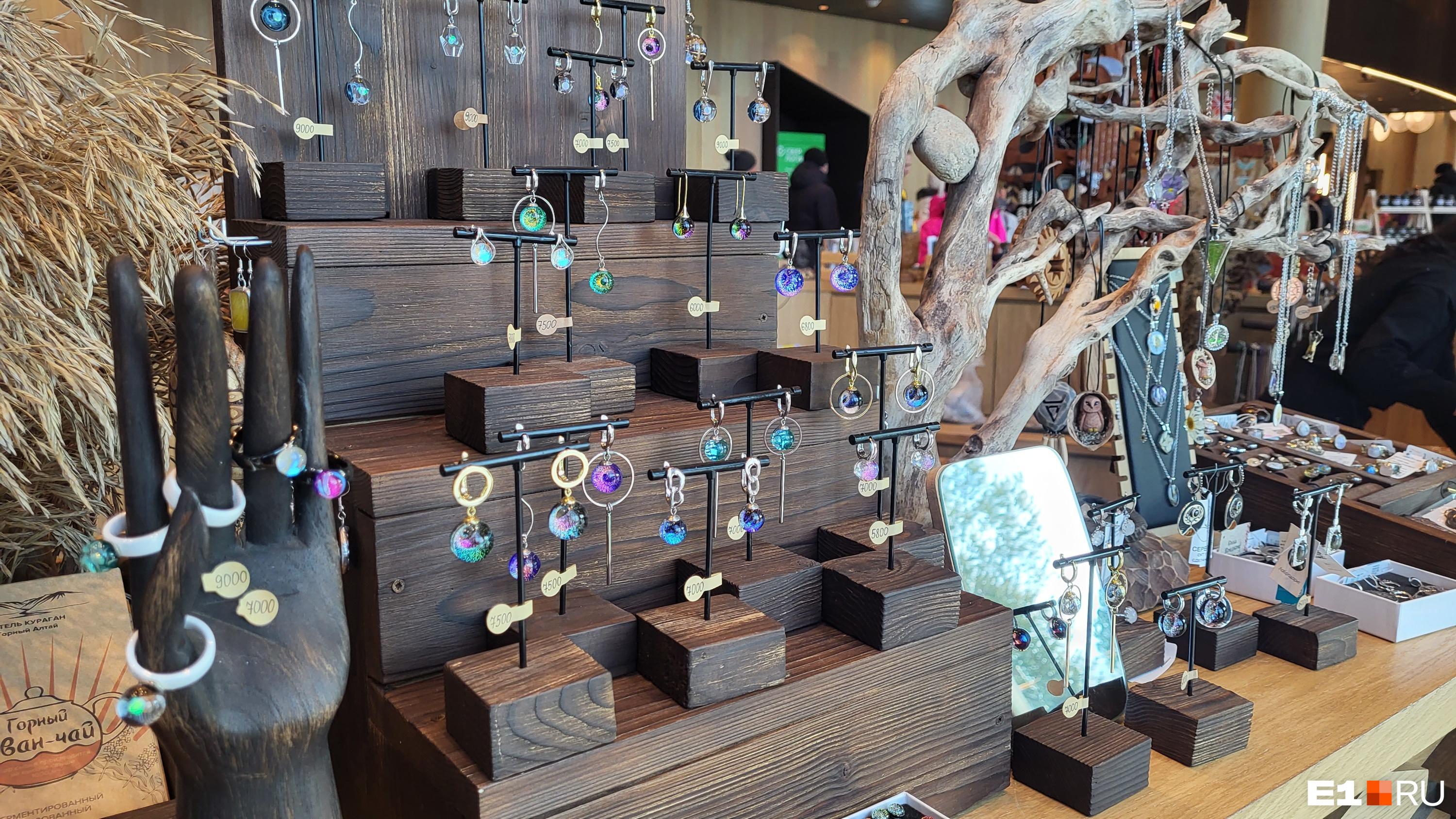 В качестве сувениров, помимо магнитиков — камни, минералы и украшения. Но вот в случае с последними ценник может кусаться: в курорте «Манжерок» серьги с муранским стеклом, например, продавали по 7500 рублей, а серебряные — за 16 тысяч.