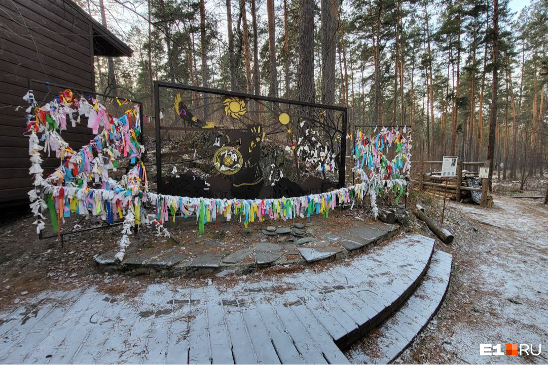 На том берегу, где и находится водопад, когда-то тоже была база. Тут же для туристов стоит локация с навешанными ленточками на удачу. Экскурсовод Иван говорит, что большинство таких зон — бутафория, которая не имеет ничего общего с местом поклонения местных жителей.