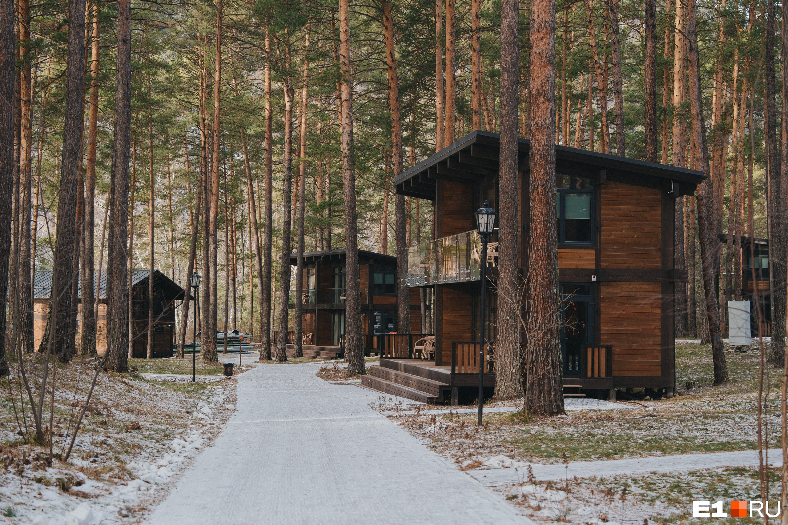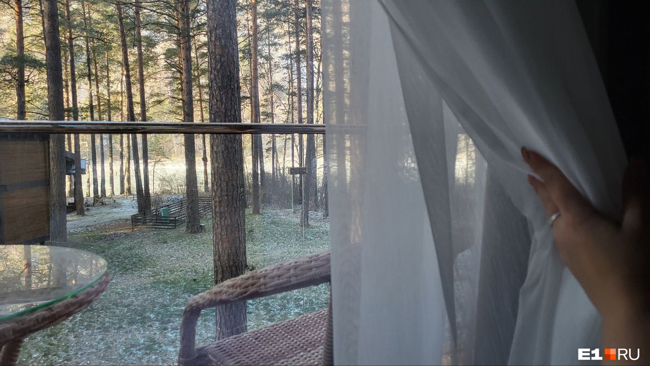 Мы жили как раз в парк-отеле посреди леса — в «Сказке Алтая», которой сейчас управляет компания «УГМК-Застройщик». Раньше тут была база отдыха с домиками из алтайского кедра, которые в этом году решили сохранить, обновить и органично встроить в новую концепцию.