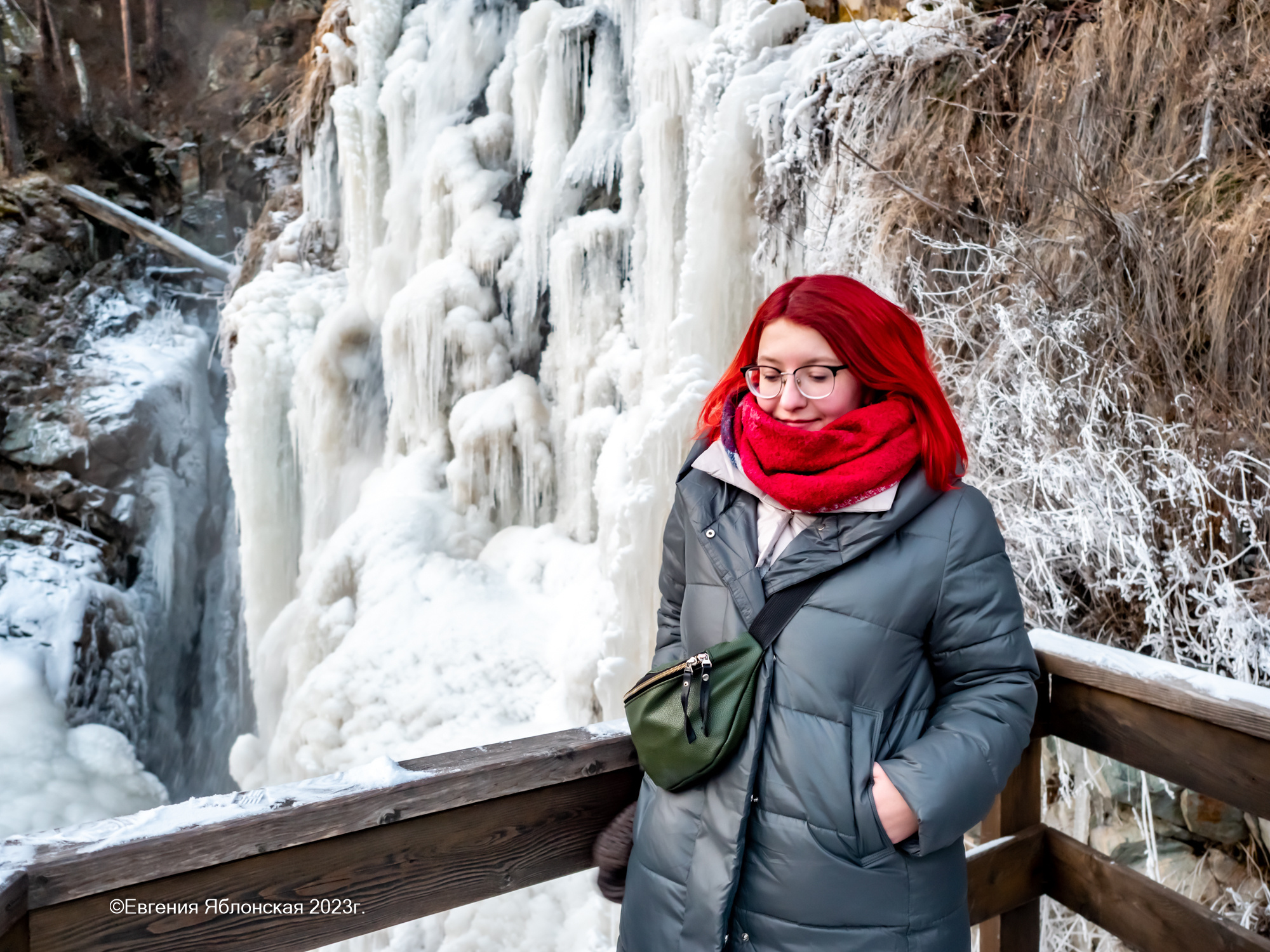 От этого места по тропинкам идем два километра до Камышлинского водопада. Он не то чтобы очень высокий, поэтому летом вряд ли выглядит так же впечатляюще, как зимой, когда вода замерзает.