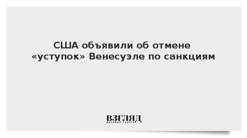 Вашингтон с 1 марта отменяет «уступки» Венесуэле – исключения из санкционного режима, связанные с работой американских нефтяных фирм, сообщили власти США.