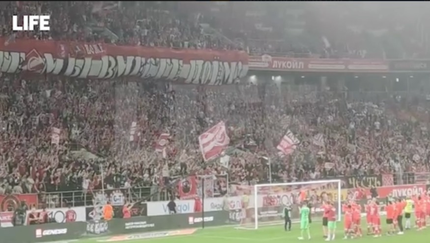 Болельщики московского "Спартака" хором спели "Катюшу" после победы команды. Видео © LIFE