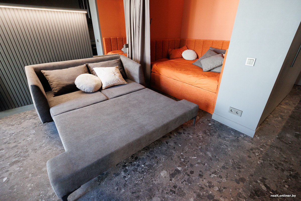 — Он раскладывается, тем самым добавляя еще два спальных места. В целом в квартире могут переночевать четыре человека.