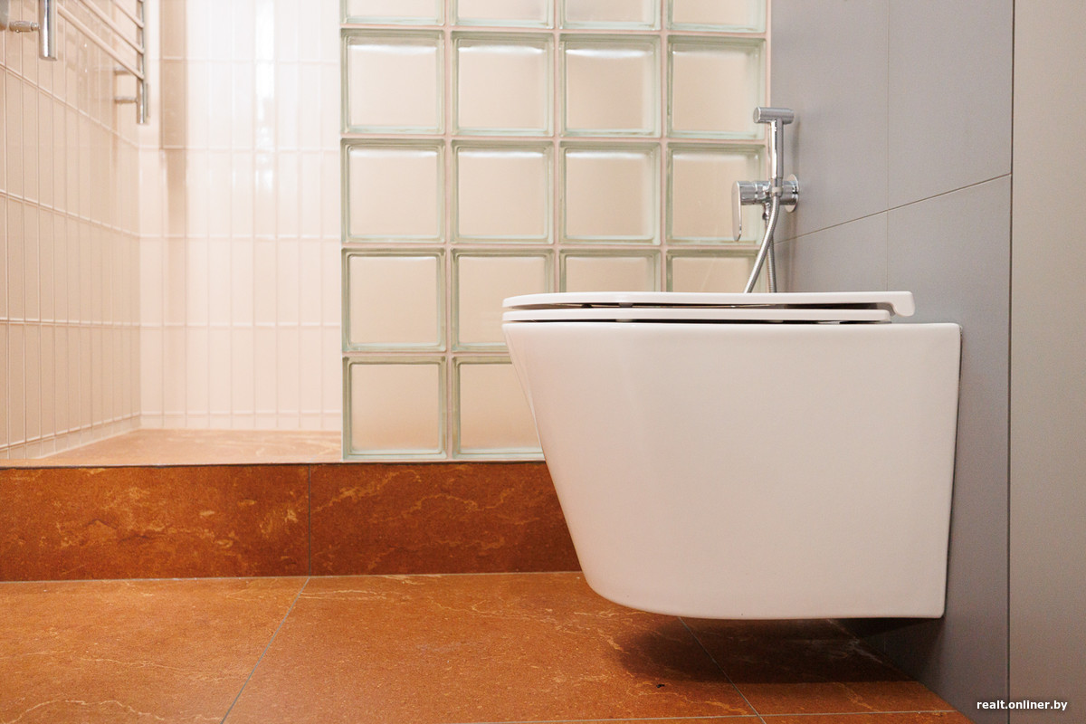 Что касается функциональности, то здесь все продумано: пространство перед унитазом — больше метра, есть шкафчики для хранения и ниша для стиральной машины.
