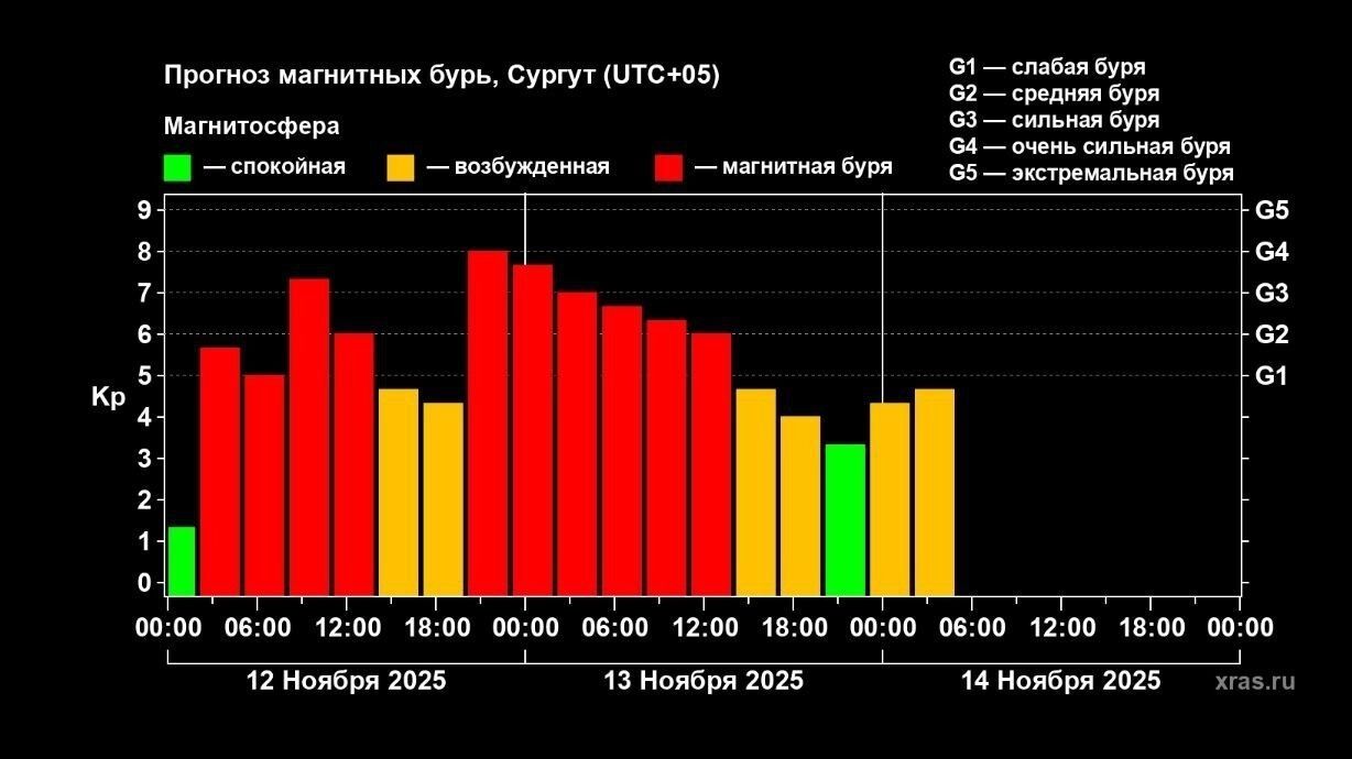 График магнитных бурь до конца ноября — в другом материале Муксун.fm.