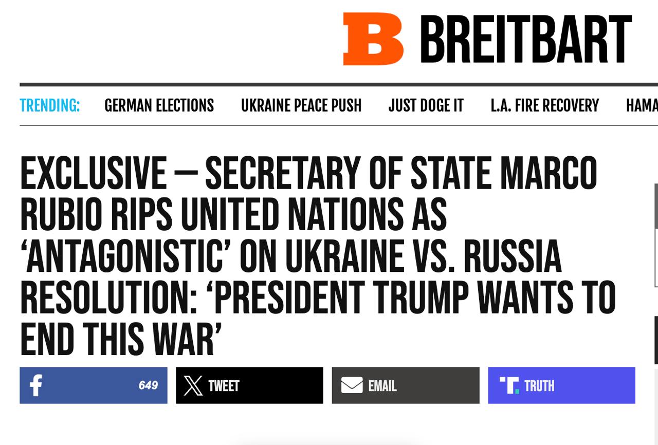 Команда Трампа на первых переговорах с РФ обсуждала ее готовность к прекращению войны и получила утвердительный ответ. Теперь американцы хотят узнать, какие условия Москвы для этого. Об этом заявил госсекретарь Рубио в интервью изданию Breitbart News.