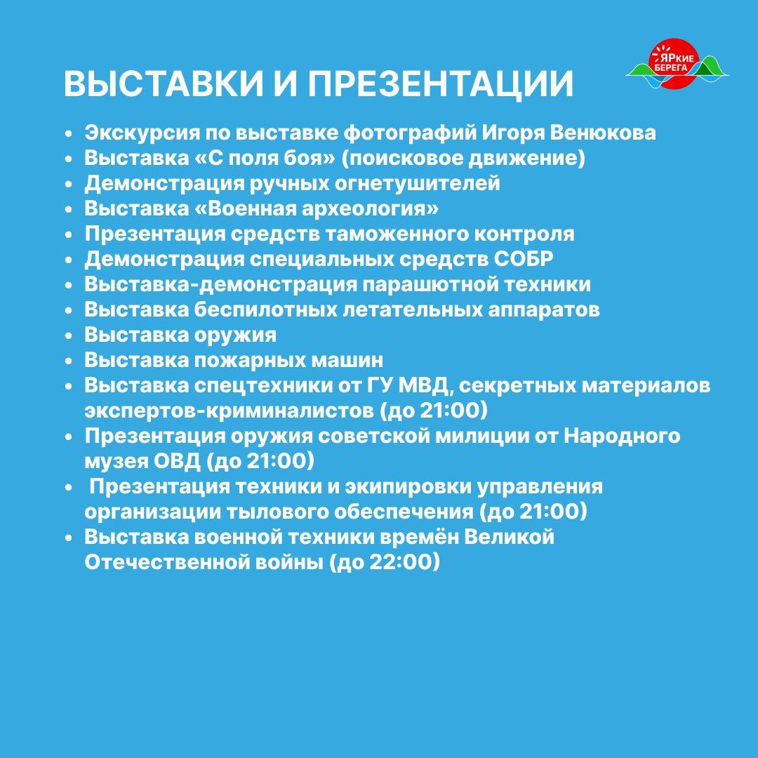 На Центральной набережной пройдёт выставка вооружений, техники силовых и спасательных служб. Также в программе — мастер-классы, имитация полёта на беспилотниках, полевая кухня, возможность пообщаться с участниками специальной военной операции и многое другое. Начало мероприятия в 16:00.