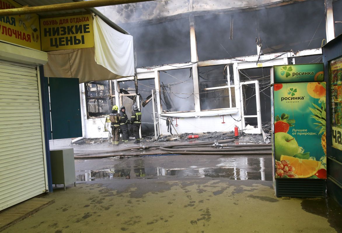 Рядом с горевшим павильоном, как бы через стенку, состоящую из других рыночных строений, во время тушения пожара, несмотря на запах гари, продолжал работу продуктовый рынок. Его продавцы тоже не особо горели желанием общаться с журналистами.