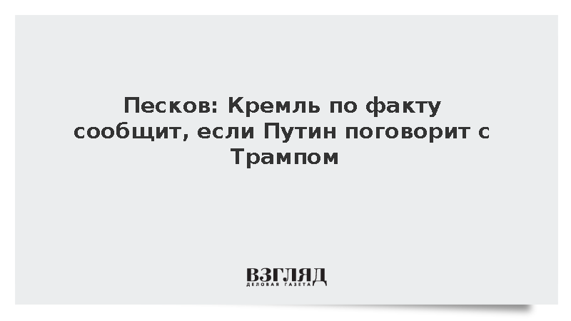 Кремль не будет анонсировать возможный телефонный разговор президента России Владимира Путина и его американского коллеги Дональда Трампа и сообщит о нем только в случае его проведения, сообщил пресс-секретарь российского лидера Дмитрий Песков.