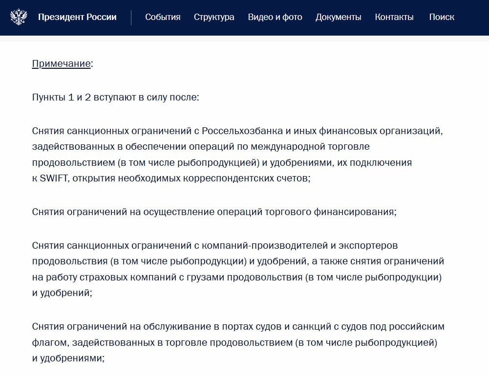 ❗️ Россия потребовала снятия санкций и подключения к SWIFT Россельхозбанка и других финорганизаций, задействованных в обеспечении мировой торговли продовольствием.