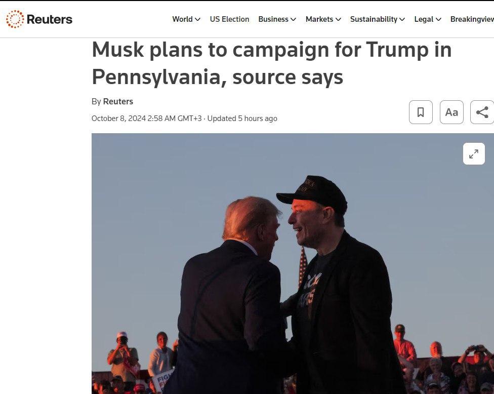 Илон Маск продолжит участие в кампании в поддержку Дональда Трампа в Пенсильвании