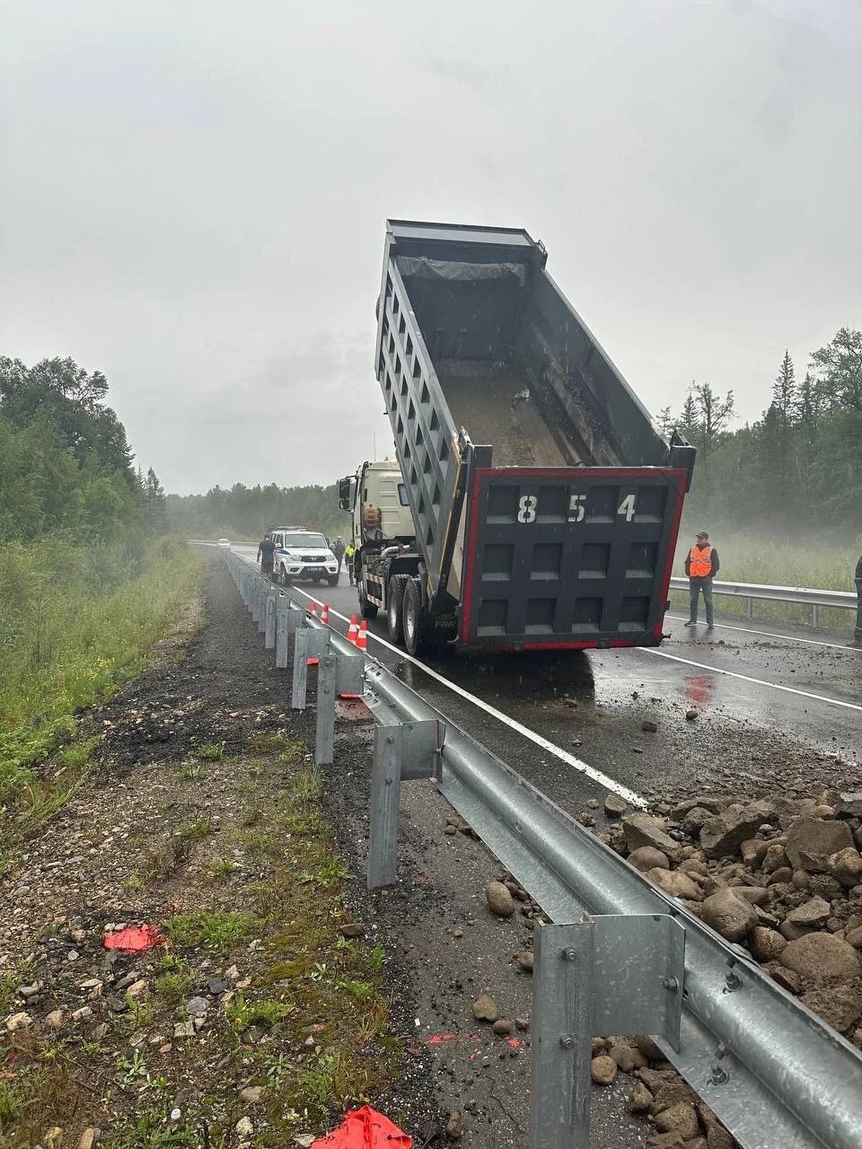 В настоящее время движение на участке закрыто. Отмечается, что для оперативного запуска движения специалисты ФКУ Упрдор «Южный Байкал» и подрядной организации проводят работы по отсыпке земляного полотна подхода скальным грунтом. На участке задействовано 20 самосвалов, два фронтальных погрузчика, два экскаватора и один кран-борт.