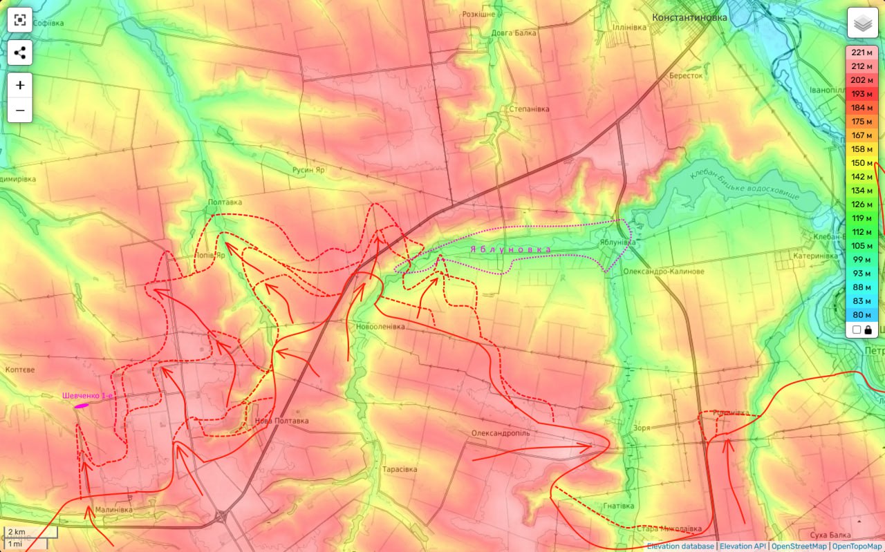 Попов Яр наши войска уже взяли в клещи и заняли все преобладающие здесь высоты. Думаю, день-два и противника отсюда выбьют. В Полтавке идут бои (южная часть села уже под нами). К Русину Яру постепенно подходим с юга по посадкам. Противник пытается удерживать этот рубеж, но получается у него откровенно плохо.