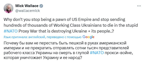 «Почему бы тебе не перестать быть пешкой американской империи и прекратить оправлять сотни тысяч украинцев из рабочего класса на смерть», – призвал он на своей странице в соцсети.