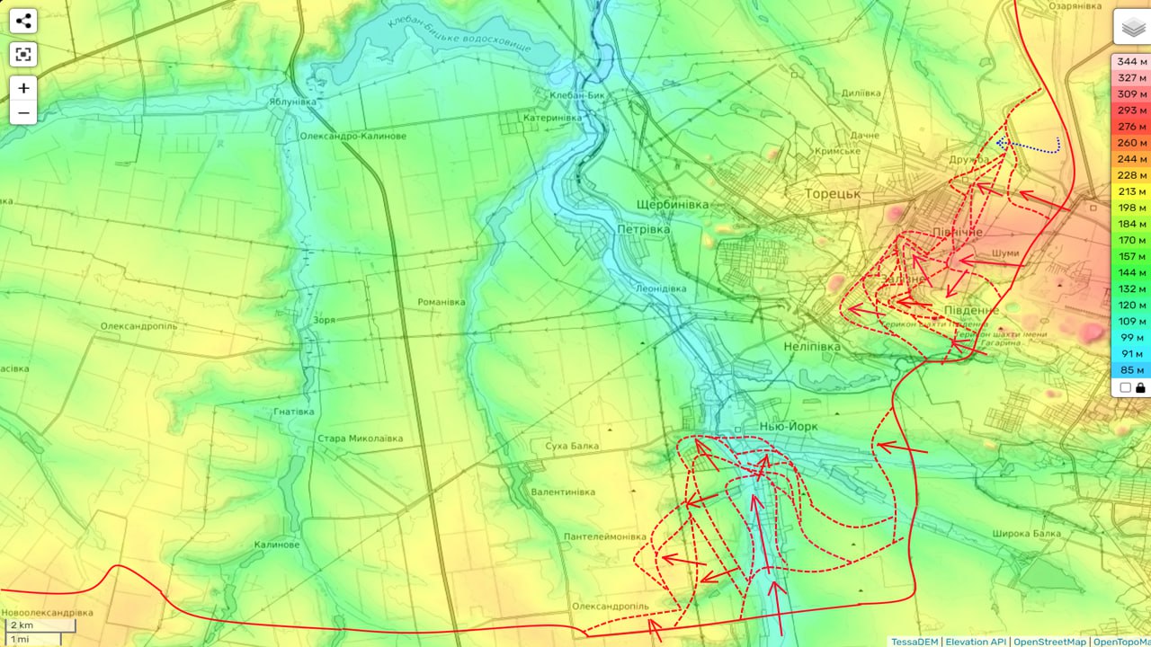 Также это позволит нам войти в южную часть Торецка и тем самым сильно осложнит (одновременно с утерей ключевой высоты) противнику удержание этой части города.