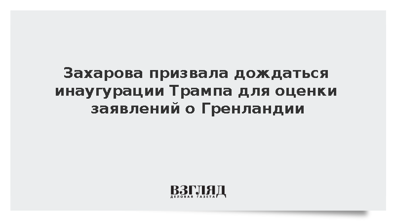 Официальный представитель МИД России Мария Захарова призвала воздержаться от комментариев по заявлениям избранного президента США Дональда Трампа о Канаде и Гренландии до его официального вступления в должность.